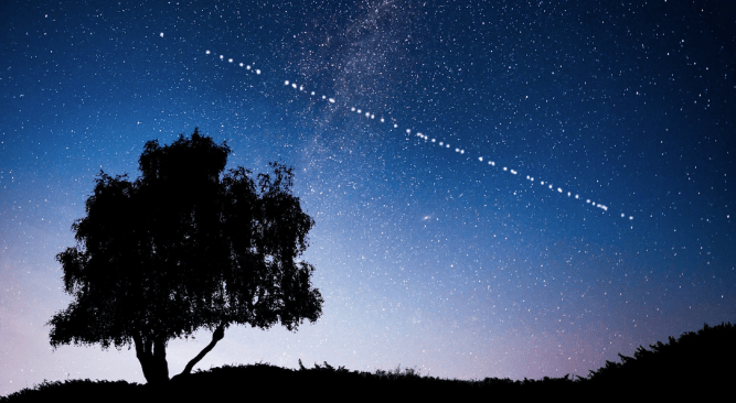 Starlink satellites can sometimes be seen in the night sky